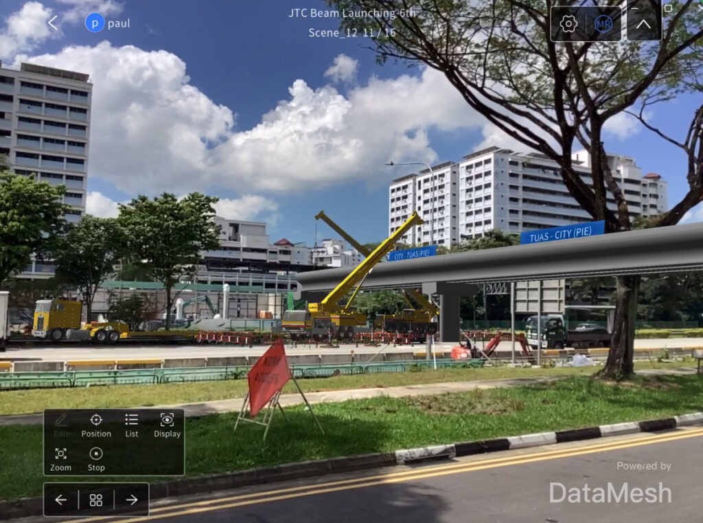 The collaboration between DataMesh and JTC led to the implementation of DataMesh Director, enabling the rapid creation of 3D construction processes. The platform uses digital twin and MR technology to turn BIM/CIM models into practical, real-time applications on construction sites, allowing workers to better visualise their tasks, understand project requirements, and improve overall workflow.