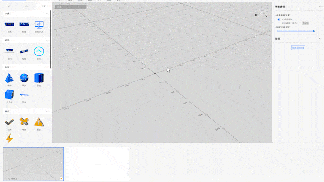 - The function of the viewpoint square in the scene area is added. A 3D viewpoint square will be displayed in the upper right corner of the scene area to show the direction of the current scene. By clicking the square, you can adjust the viewpoint direction.