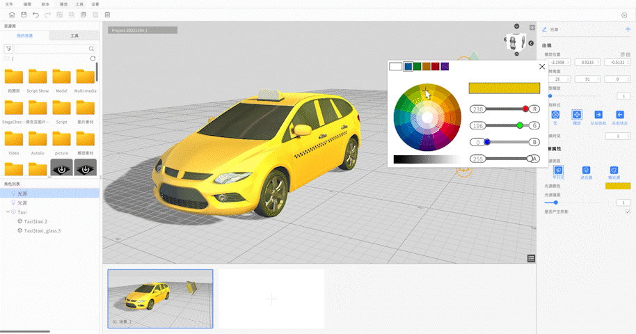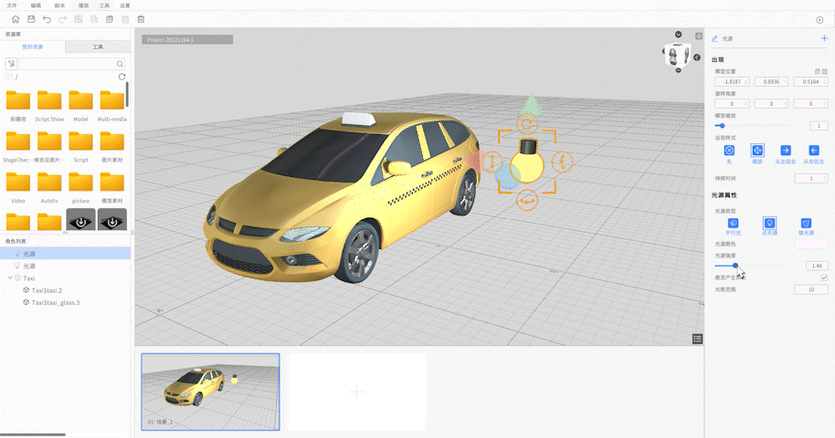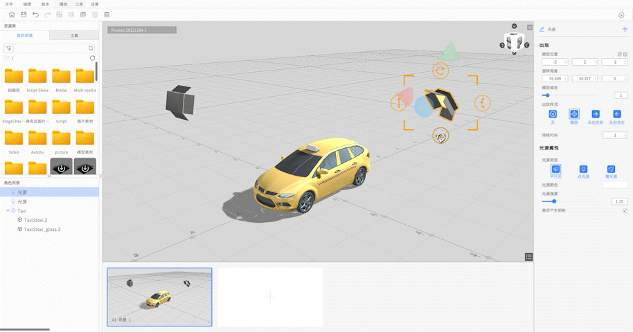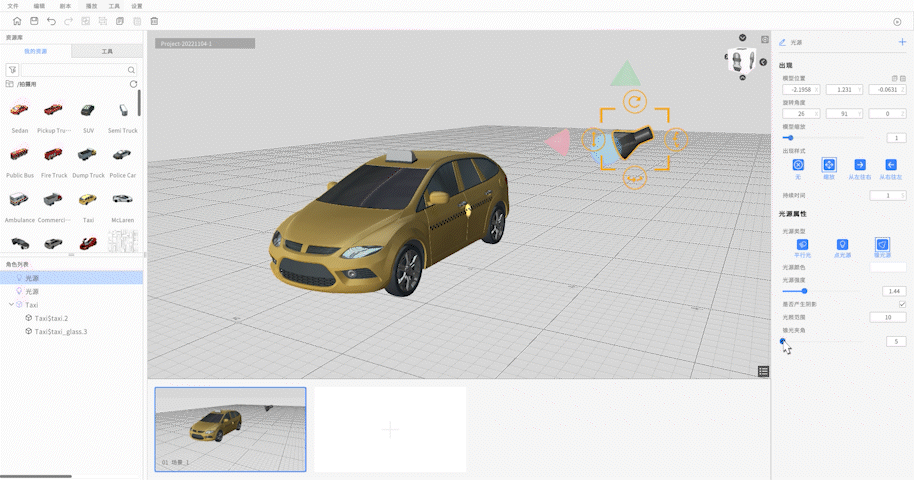 - NEW “Light Source” gadget enables users to add light sources to a scene, supporting the configuration of attributes including light intensity, color, and light range. Two light sources are added by default when a scenario is created in DataMesh Director 5.4. Users can then modify the light sources based on their needs afterwards. When a scene is being played, the light source models are automatically hidden.