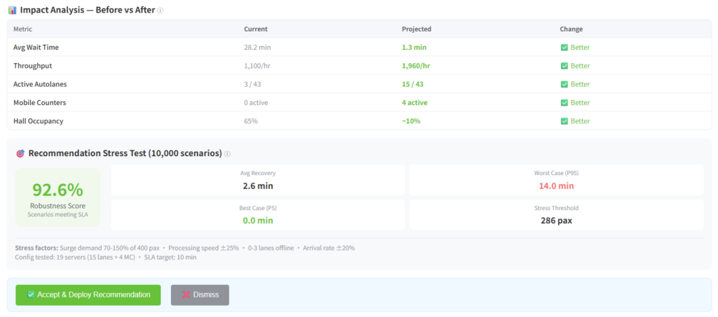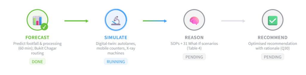 This simulation environment incorporates spatial constraints, equipment capacity, operational rules, and real workflows—ensuring that recommended decisions are not only optimal in theory but feasible in practice.