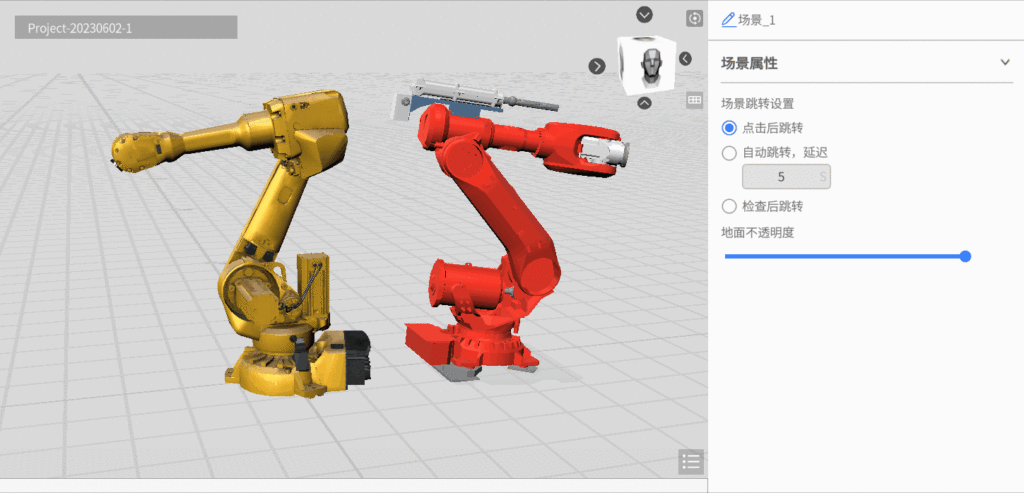 Linking: Users can now add linking actions to any scene element. Simply clicking on the element seamlessly transitions the scenario from the current page to the target page. Additionally, users have the flexibility to set the trigger range for the linking action within the scene using a convenient drag-and-drop feature, enabling flexible transitions in 3D scenes.
