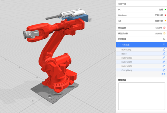 Coloring: With the coloring action, users can change the color of any model node, whether it’s the entire model or individual child objects. Two styles of coloring, gradient and flickering, are supported to achieve the desired visual effects.